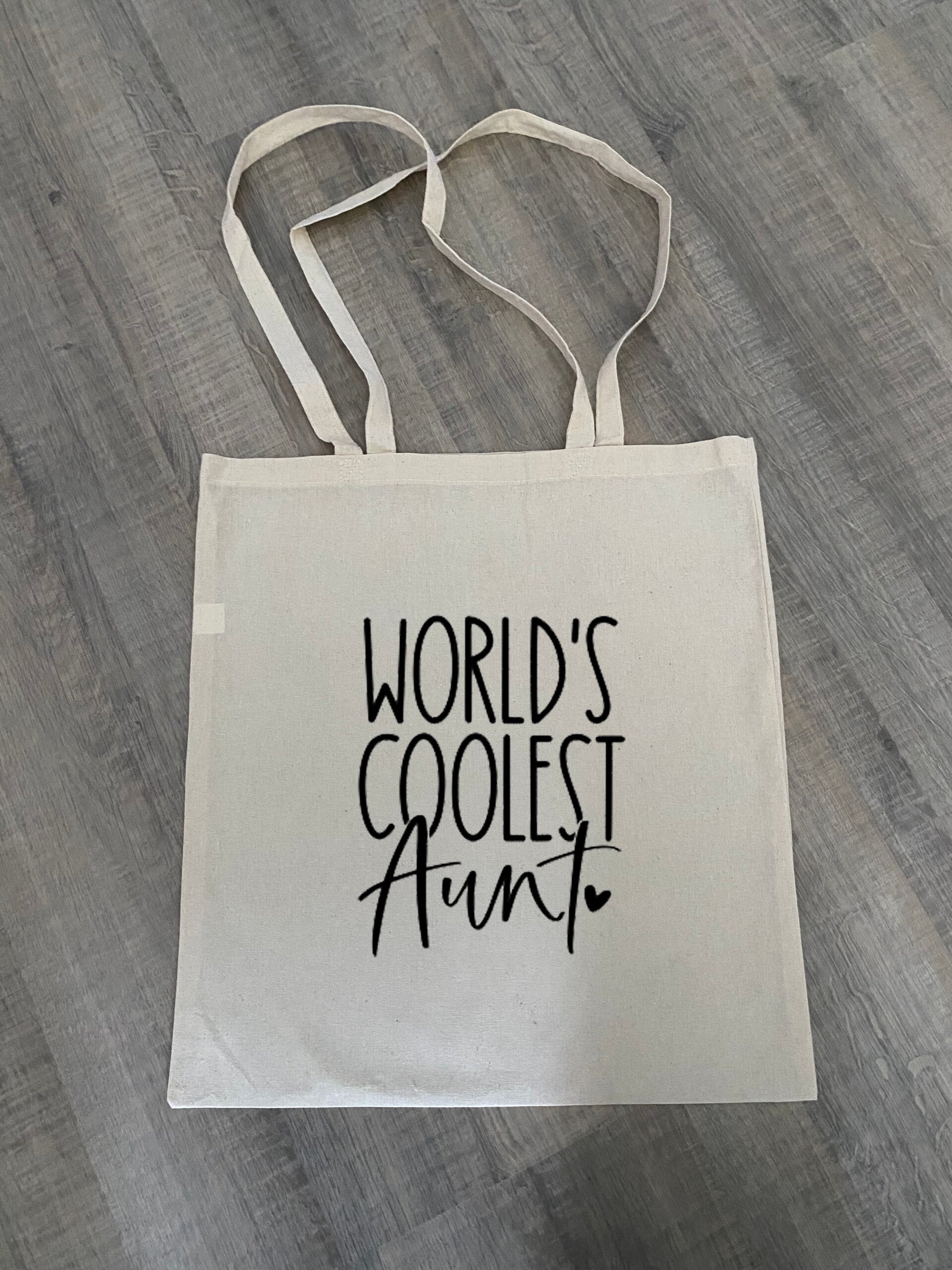 Deze toffe katoenen tas met de tekst World’s Coolest Auntis hét cadeau voor elke tante die haar rol met trots én plezier vervult.
