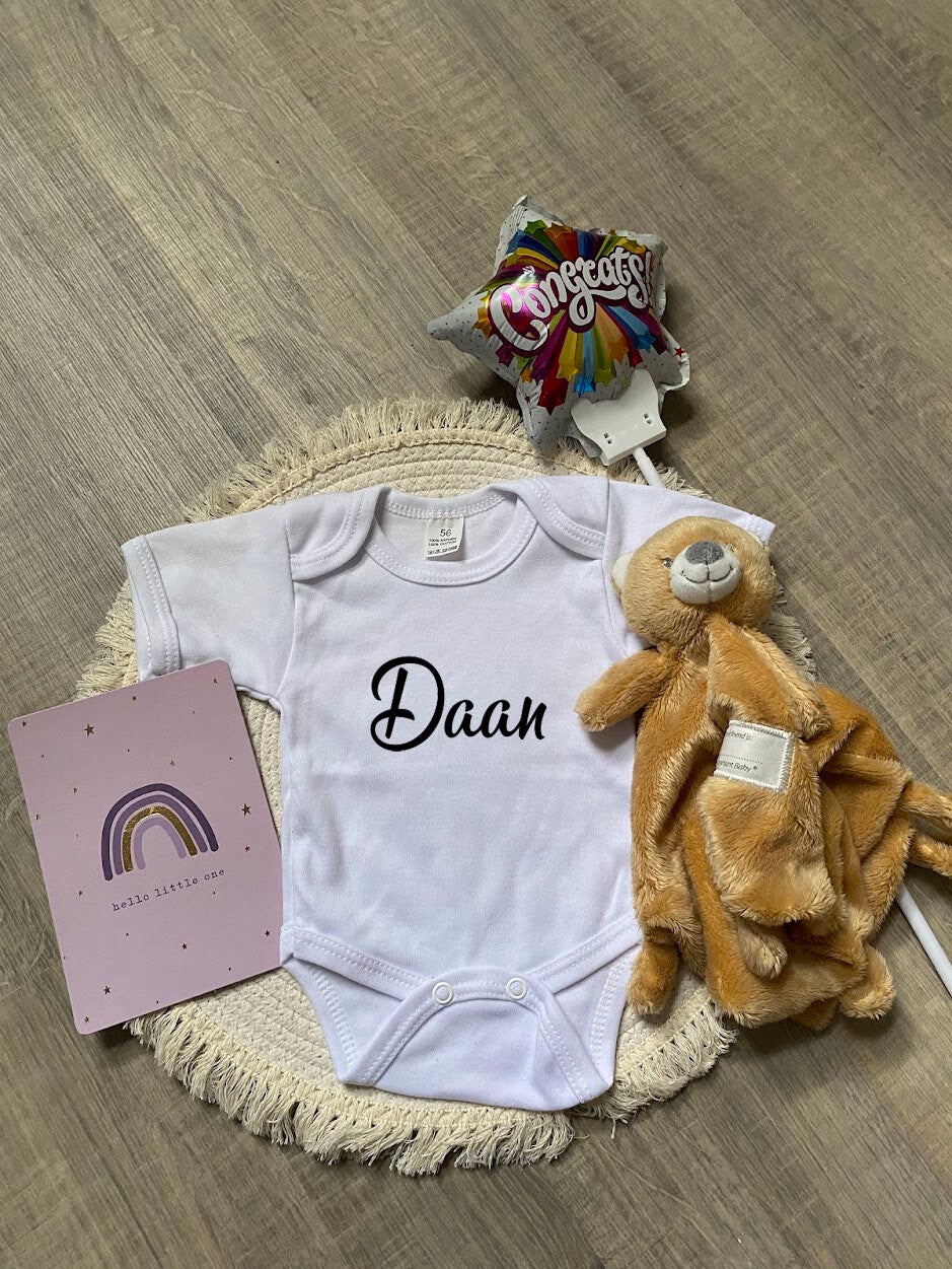 Kraamcadeau witte romper met naam