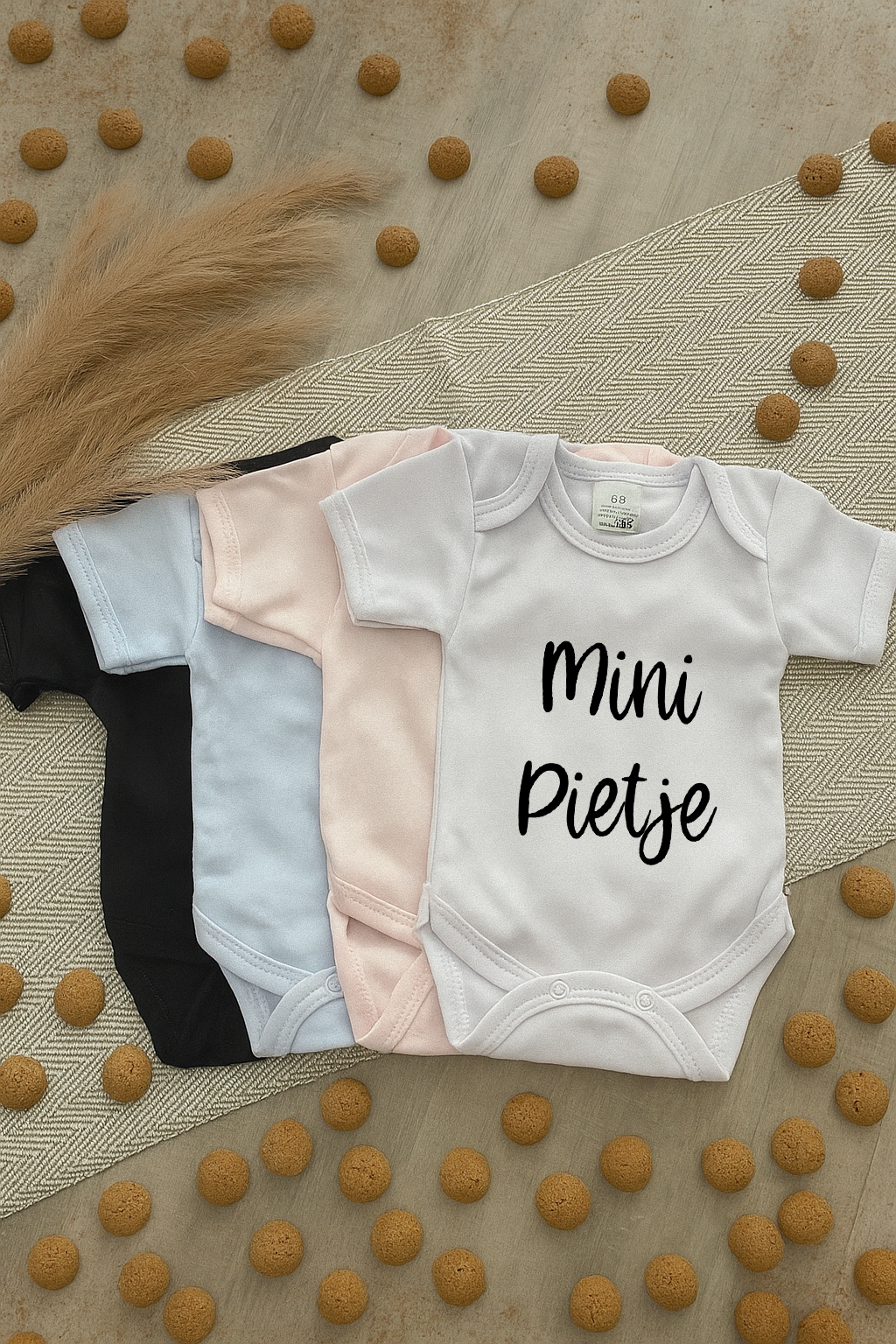 Perfect voor het Sinterklaasfeest: of het nu gaat om een romper, t-shirt of slabber, Mini Pietje zorgt voor extra gezelligheid.